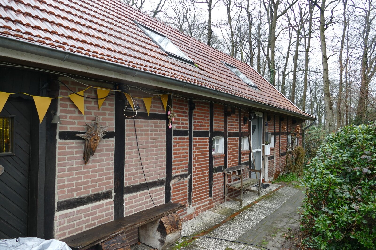 Das Fachwerkhaus steht auf einem ehemaligen Bauernhof in ländlicher Lage.
